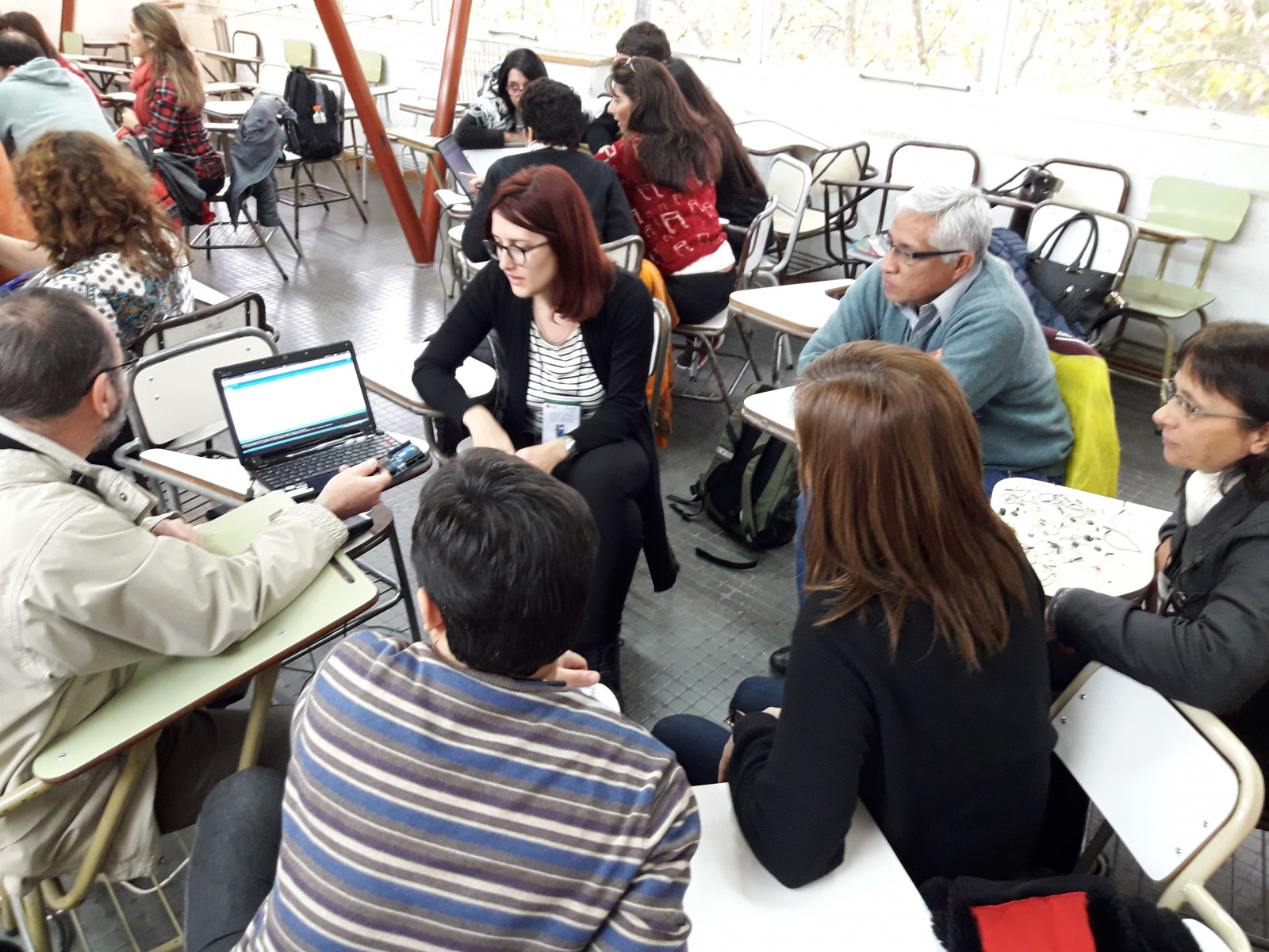 Cada profesional sabía algo y la circulación de la información fue fluyendo constantemente. Todos sabíamos algo y todos enseñamos algo. El jueves el taller funcionó porque los profes entendieron nuestra dinámica y aportaron en la construcción colectiva del taller, se llevaron más ideas y se coparon en seguir a la distancia el intercambio.