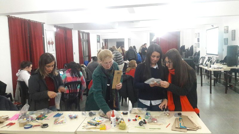 Es así que pudimos construir un espacio que fusionó lo lúdico, lo artístico, lo colaborativo, las tecnologías libres, la didáctica, lineamientos pedagógicos para la práctica, etc. ¿Para qué? Para que lxs docentes puedan saber que existen esos recursos y darles estrategias para que puedan usarlos en el aula. Pero en el fondo se reveló un para qué más grande, volver a aprender a mirar con ojos de infancias o lo que es igual pero distinto: des-aprender de la mirada de adulto que juzga y desprecia. La sorpresa sobre los logros, el asombro , la celebración, la incertidumbre sobre un desperfecto son elementos que aparecen en el taller para sacar los miedos y establecer ese nuevo vínculo.