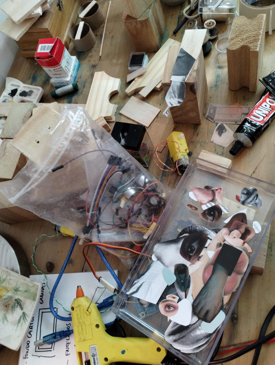 Para esta ocasión creamos robotitos con los componentes y la técnica del collage para que los vean andando y siendo parte de personajes. Con especial énfasis en la cultura del reciclaje y la reutilización, creamos con lo que tenemos a la mano. También, nuestras pcs son recicladas y ajustadas para que cumplan las funciones que necesitamos.