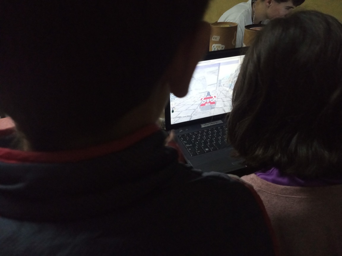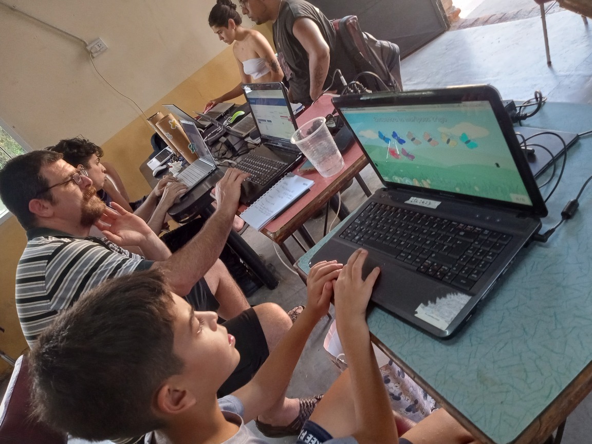 Algo que nos preguntamos bastante es de qué manera y hasta que punto encarar contenidos de programación con las niñeces. Por un lado nos parece interesante empezar a comprender que pasa “adentro de la compu”, y por otro, entendemos que la niñez es el momento de exploración y juego por excelencia. Así fue que decidimos juntar la demanda por los videojuegos y nuestra intención de profundizar conocimientos y les propusimos comenzar a crear nuestro propio video juego.